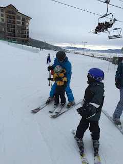 Telling me all about his day at school and looking forward to skiing a few more hours just with mom and dad and Hunter!